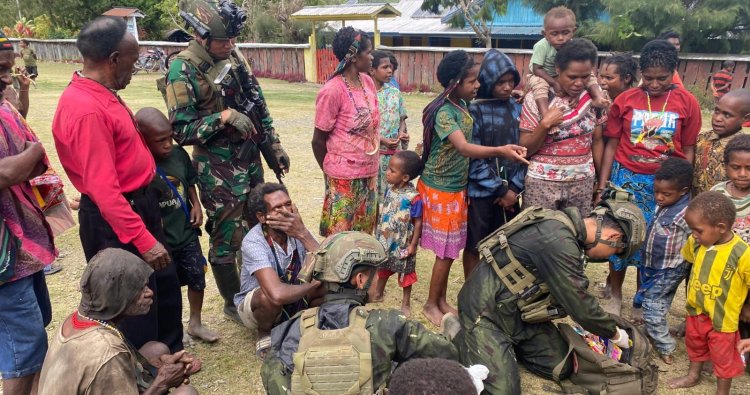 INTAN JAYA - Di tengah kehangatan pegunungan Intan Jaya, Satuan Tugas Pengamanan Perbatasan (Satgas Pamtas) RI-PNG Mobile Yonif 500/Sikatan tak henti menebar kebaikan. Sebanyak 13 personel dari Titik Kuat (TK) Titigi, di bawah komando Letda Inf Fedriko, menggelar sebuah momen berharga melalui kegiatan Komunikasi Sosial (Komsos) yang dipadukan dengan pelayanan kesehatan gratis pada Sabtu, (6/12/2025), di Kampung Titigi. Inisiatif humanis ini disambut meriah oleh warga, menghadirkan tawa ceria anak-anak dan kelegaan bagi para orang tua yang akhirnya dapat berkonsultasi langsung dengan tenaga medis.