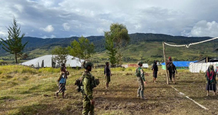 LANNY JAYA - Suasana hangat menyelimuti Kampung Nenggeagin, Distrik Nenggeagin, Kabupaten Lanny Jaya, Papua Pegunungan, pada Jumat (21/11/2025). Personel Satgas Yonif 408/Sbh dari Pos Nenggeagin tak sekadar menjaga, tetapi juga merajut keakraban dengan warga melalui permainan bola voli. Kegiatan sederhana ini menjadi bukti nyata bagaimana olahraga dapat menjadi jembatan emosional yang kuat antara TNI dan masyarakat pegunungan Papua.