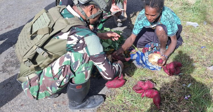 INTAN JAYA - Kehangatan interaksi antara personel TNI dan masyarakat terasa kental di sepanjang Jalan Poros Sugapa–Beoga, Kabupaten Intan Jaya. Satuan Tugas Pengamanan Perbatasan (Satgas Pamtas) RI–PNG Mobile Batalyon Infanteri 500/Sikatan secara konsisten hadir di tengah-tengah warga, kali ini melalui program unggulan ROSITA (Borong Hasil Tani) yang kembali bergulir pada Jumat (23/1/2026). Program ini bukan sekadar transaksi jual beli, melainkan wujud nyata kepedulian untuk menopang denyut nadi ekonomi kerakyatan di wilayah pedalaman Papua.