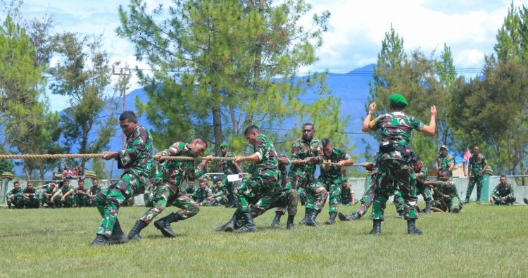 Wamena – Dalam rangka memperingati Hari Ulang Tahun ke-21 Batalyon Infanteri 756/Wimane Sili (WMS), satuan tersebut menggelar lomba Tarik Tambang yang berlangsung di Lapangan Pancasila Yonif 756/WMS, Jayawijaya, Papua Pegunungan, pada Rabu (12/11/2025).