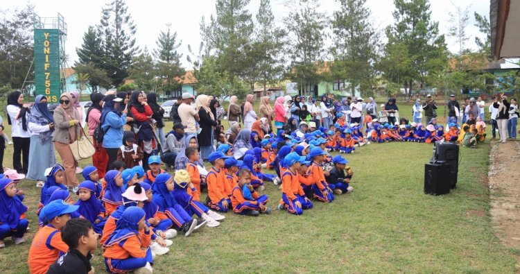 Wamena - Personel Yonif 756 Menggelar Kegiatan Outbond dan Senam bersama Anak-anak TK Mutiara Hati Wamena pada Sabtu, 24/01/2026.